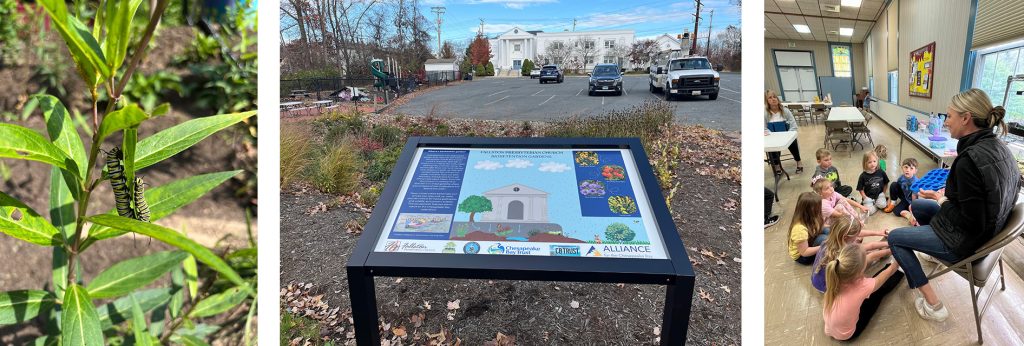 In 2020, Fallston Presbyterian Church created a memorial garden with a vision from a member who lost a grandchild soon after her birth. It is a peaceful, beautiful place that was enjoyed by church members, preK children/teachers and visitors. However when there was a storm event, the garden area was inundated with water, despite some landscaping measures to decrease this. It was estimated that during a storm 5,628 cubic feet of water would flow from the church roof, downspouts and parking lot into the lower part of the church property. At a church environmental event, I met Laura Todd, from the Alliance for the Chesapeake Bay, who offered a storm water assessment, which was completed in August of 2022. Due to the predicted cost and scope of the project to address the stormwater adequately, an Outreach and Restoration Grant application from the Chesapeake Bay Trust was suggested. This sounded overwhelming, until Laura offered to do the grant writing in partnership with our church. We received amazing support during the process! During the grant process, the church and the church’s Pre-Kindergarten wrote letters of commitment and gave feedback on google documents. We had to have specific details on the goal of the project, the contractor to complete the project, how we would reach out to the community and care for the project on completion. Bonnie Sorak, of Interfaith Partners for the Chesapeake, was instrumental in the community outreach components of the grant. After evaluation of bids for the project, Great Blue Co. was chosen as the contractor. The grant was submitted on August 3, 2023.